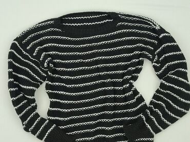 Sweter w paski – biało-czarny - Klasyczny, dzianinowy sweter z długim rękawem - Kolor: biel z czarnymi, równymi poziomymi paskami - Splot: strukturalny, wyraźna faktura; ściągacze przy dekolcie, m...