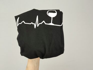 Czarna koszulka z krótkim rękawem z nadrukiem białego wykresu EKG z kieliszkiem wina pośrodku.