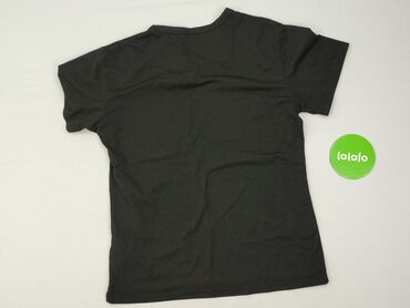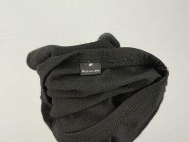 Czarna koszulka T‑shirt unisex - Kolor: czarny, gładki, bez nadruku - Krój: klasyczny T‑shirt z krótkim rękawem i okrągłym dekoltem - Rozmiar: M (Medium) – metka widoczna na zdjęciu - Materiał: 10...