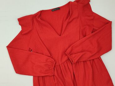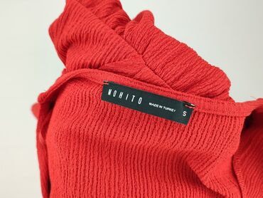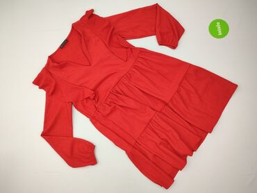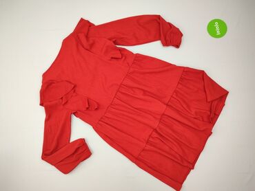 Sukienka MOHITO Collection - Rozmiar: XS (z metki) - Kolor: intensywna czerwień - Krój: prosta góra z okrągłym dekoltem, długi rękaw, na dole efektowne, asymetryczne marszczenia/falbanki nadające ...
