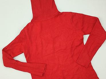 Czerwony sweter damski z półgolfem - Fason: dopasowany, dzianina prążkowana - Dekolt: półgolf/stójka - Rękaw: długi - Długość: do bioder - Materiał: miękka, elastyczna dzianina (syntetyk z domiesz...