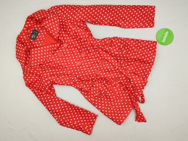 Płaszcz damski House – lekki trencz w grochy - Marka: House - Rozmiar z metki: S (164–176 / 92) - Krój: dwurzędowy trencz z kołnierzem - Wzór: białe grochy na czarnym tle - Materiał: 100% polieste...