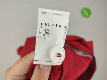 Czerwony damski żakiet marynarkowy - Fason: taliowany, zapinany na trzy guziki z przodu - Kołnierz z klapami - Rękawy 3/4 z podwijanymi mankietami w biało‑czerwone paski - Dwie naszyte kieszenie z...