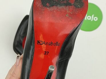 Brązowe czółenka Anabelle na słupku - Marka: Anabelle (logo na podeszwie) - Rozmiar: 37 - Kolor: ciemny brąz - Materiał cholewki: skóra naturalna (piktogram na podeszwie) - Wyściółka: skóra natura...Stan: