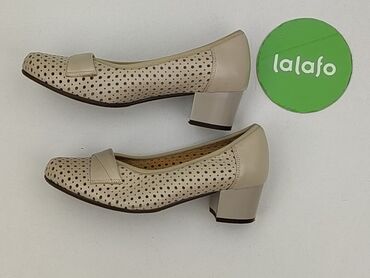 Czółenka damskie Lasocki - Rozmiar: 37 (oznaczenie na spodzie) - Materiał: skóra naturalna (sygnowane ikoną skóry wewnątrz) - Kolor: karmelowy/beżowy - Obcas: stabilny, słupek ok. 7–8 cm, w stylu ...