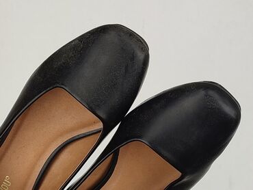Czółenka H&M na obcasie - Model: klasyczne szpilki z zaokrąglonym noskiem - Rozmiar: 38 (oznaczenie w bucie) - Kolor: czarny - Cholewka: materiał zamszopodobny - Wyściółka: beżowa, miękka - Podesz...