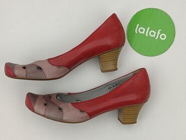 Czółenka damskie na stabilnym słupku - Rozmiar: 41 (oznaczenie wewnątrz i na podeszwie) - Kolor: koralowy / łososiowy, wysoki połysk (lakier) - Obcas: słupek, ok. 4–5 cm – wygodny i stabilny na co...