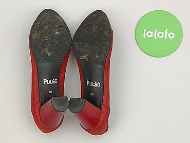 Eleganckie buty idealne do pracy i na wyjścia – łączą efektowny wygląd z wygodą. Marka: Pulso (oznaczenie na podeszwie). Rozmiar: 40. Kolor: czerwony z połyskiem. Styl: czółenka na słupku.