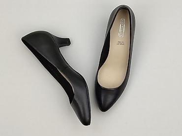 Czarne klasyczne czółenka na obcasie dla kobiet. - Model: czółenka/pumps - Kolor: czarny, matowy - Rozmiar: 37 (oznaczenie na podeszwie) - Obcas: smukły słupek, ok. 7–8 cm - Nosek: migdałowy/lekko...