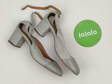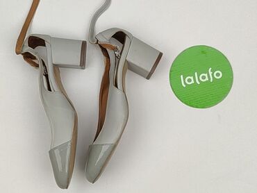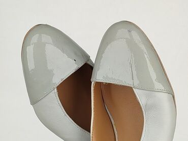 Szare czółenka na obcasie – lakierowane - Model: LEY-135 GREY (widoczne na wkładce) - Rozmiar: 36 (oznaczenie na podeszwie i wewnątrz) - Cholewka: lakierowana, gładka, w kolorze jasnoszarym - Nose...