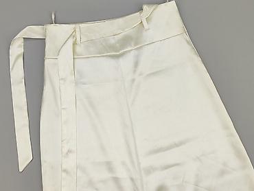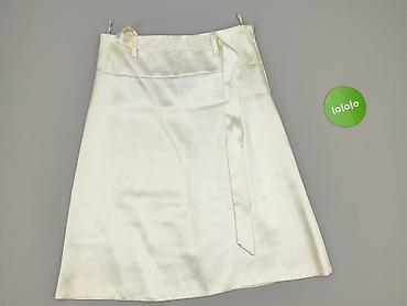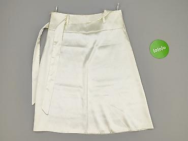 Spódnica damska w prążek, rozmiar 36 - Kolor: beżowo‑piaskowy z delikatnym, drobnym prążkiem - Krój: lekko rozkloszowany ku dołowi, przód z głębokimi kontrafałdami; dekoracyjne, ukośne cięcia mode...