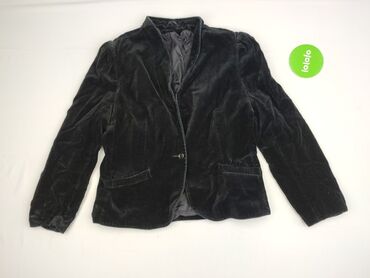 Elegancki aksamitny blezer damski w szarym kolorze. Charakteryzuje się klasycznym krojem z kołnierzem i klapami, a także długimi rękawami z lekko bufiastymi ramionami. Zapinany na pojedynczy guzik ...Stan: