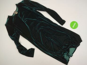 Sukienka welurowa w kolorze butelkowej zieleni/teal. - Materiał: miękki, połyskujący welur, przyjemny w dotyku - Fason: dopasowany, długość mini - Rękawy: długie - Dekolt: łódkowy - Pasek: w kompl...Stan: