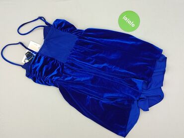 Sukienka Bershka – błyszcząca, niebieska - Marka: Bershka - Fason: dopasowana, mini - Dekolt: prosty/halter z cienkimi, regulowanymi sznureczkami wiązanymi na plecach - Plecy: odkryte, krzyżujące ...