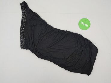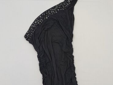 Czarna sukienka/tunika Made in Italy - Fason: dopasowany, długość mini; lekko marszczona na dole i przy ramionach - Rękawy: krótkie, z delikatnym drapowaniem - Dekolt: asymetryczny z ozdobnym, skr...