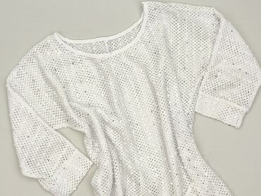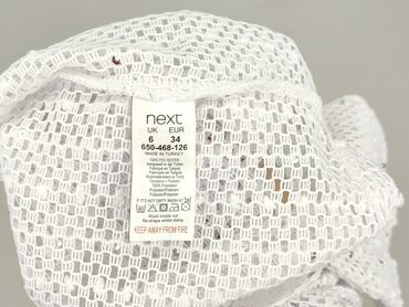 Bluzka damska Next - Kolor: biały - Krój: prosty, lekko wydłużony tył, krótkie rękawy - Dekolt: okrągły - Zapięcie: mały guziczek z tyłu przy dekolcie (pęknięcie łezka) - Materiał: 100% poliester ...Stan: