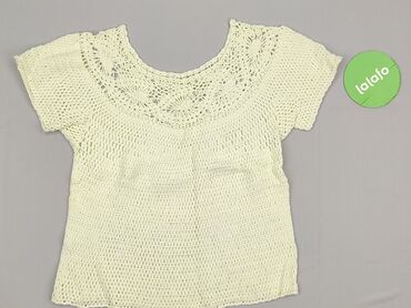Ażurowy sweter/top damski z krótkim rękawem - Kolor: musztardowy/ochra - Krój: luźna góra z raglanowym rękawem, dopasowany szeroki ściągacz w pasie podkreślający talię - Splot: przewiewny, siatecz...Stan: