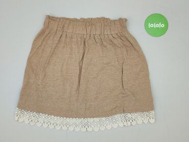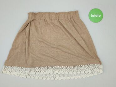 Beżowa spódnica mini z gumką w pasie - Krój: prosta mini, lekko marszczona w pasie - Wzór: tłoczone/żakardowe kwiaty w odcieniach bieli na beżowym tle - Materiał: 100% poliester (metka na zdjęciu)...
