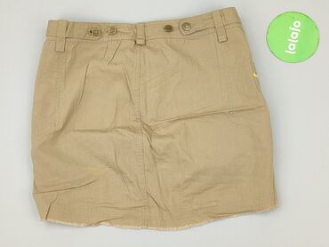 Jasna spódnica damska w kolorze beżowym, wykonana z lekkiego materiału. Spódnica ma praktyczne kieszenie z przodu, zapinane na guzik, a także dwie kieszenie z tyłu, co czyni ją funkcjonalną i wygod...