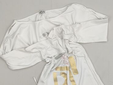Biała bluzka damska z fakturowanej, ażurowej dzianiny - Krój: luźny, z obniżoną linią ramion i krótkim rękawem typu kimono - Dekolt: okrągły - Materiał: 95% poliester, 5% elastan – lekko elastyczn...