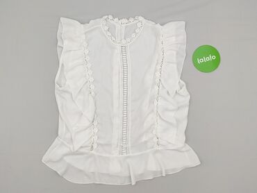 Biała, zwiewna bluzka bez rękawów z dekoracyjnym kołnierzykiem - Krój: bez rękawów, prosty, lekko luźny - Materiał: cienka, półprzezroczysta tkanina 60% poliester z recyklingu, 40% poliester - Kol...