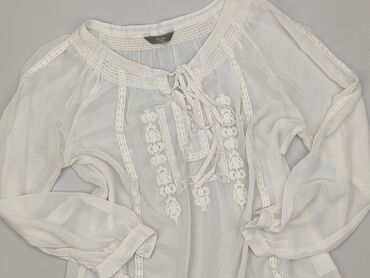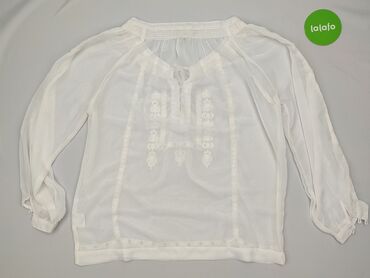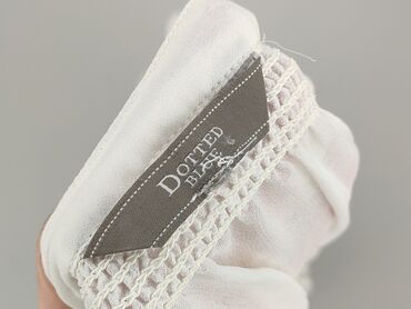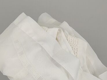 Biała damska bluzka z lekkiej, półprzezroczystej tkaniny (styl szyfonowy). - Fason: luźny, prosty krój typu boxy, bez klasycznych rękawów (opadające ramiona). - Dekolt: okrągły. - Zapięcie: z...