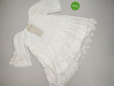Biała tunika damska z ozdobnym dekoltem - Krój: lekko rozszerzana ku dołowi, z rozcięciami po bokach - Rękaw: 3/4 - Dekolt: w kształcie litery V - Detale: haftowane zdobienia i drobne perełki przy...Stan: