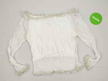 Biała bluzka hiszpanka MyOwn, rozmiar S. - Dekolt typu „off shoulder” z elastyczną gumką wokół ramion - Długi rękaw z marszczeniami i elastycznymi mankietami - Ozdobne perełki na rękawach i wzdłuż...