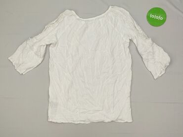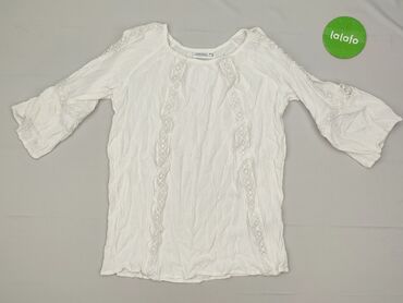 Bluzka damska JANINA, rozmiar M. - Kolor: biały - Krój: luźniejszy, z opuszczoną linią ramion - Rękawy: do łokcia - Dekolt: okrągły - Ozdoby z koronki: pionowy pas z przodu oraz wstawki wzdłuż ręk...