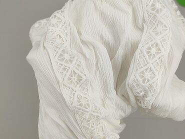 Bluzka damska Janina, rozmiar S. - Kolor: biały. - Fason: luźniejszy, z zaokrąglonym dołem (nieco dłuższy tył). - Dekolt w kształcie litery V. - Długi rękaw zapinany na guzik przy mankiecie. - Ozdo...