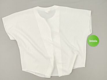 Bluzka damska z krótkim rękawem, biała - Krój: luźny, oversize z opadającym rękawem typu nietoperz - Dekolt: okrągły z delikatnym marszczeniem/zaszewką na środku - Dół: lekko zaokrąglony - Materia...