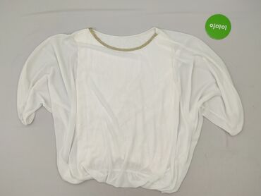 Biała, zwiewna bluzka damska „Made in Italy”. - Materiał: lekki, półprzezroczysty szyfon/żorżeta, miękko układający się. - Krój: luźny, z wydłużonym tyłem i zaokrąglonym dołem. - Dekolt w kształci...