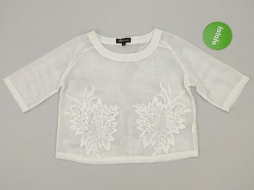 Krótki rękawBiała, ażurowa bluzka damska Stylewise