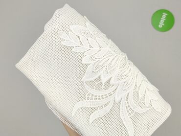 Koronkowa aplikacja/karczek z tiulu – biała - Dekoracyjny panel z delikatnego, przejrzystego tiulu w kolorze białym - Bogate, wypukłe hafty i aplikacje o roślinno‑ornamentalnym wzorze - Kształt ka...
