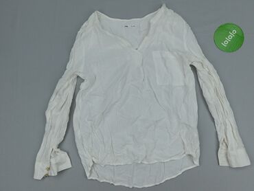 Bluzka damska Sinsay - Kolor: biały (kremowa biel) - Rozmiar z metki: S - Fason: luźny, lekko wydłużony tył (zaokrąglony dół) - Dekolt: w kształcie V z krótką listwą bez guzików - Rękawy: długie z...