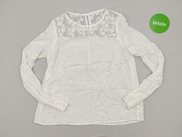 Bluzka damska House Collection - Rozmiar: M (na metce) - Kolor: biały/ecru - Krój: lekko luźny, z falbanami - Rękawy: 3/4, bufiaste z elastycznymi mankietami - Zapięcie: guzik z tyłu przy dekolcie...