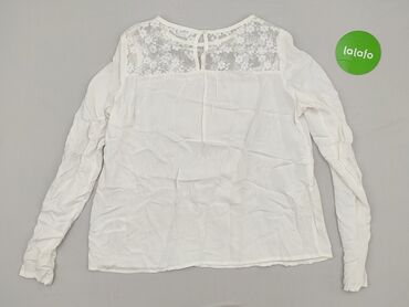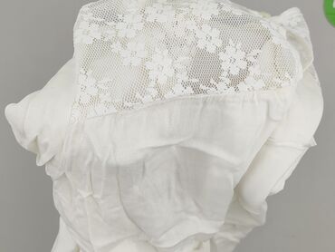 Biała bluzka damska z ażurowymi wstawkami - Krój: luźny, z długim rękawem - Dekolt: okrągły - Zapięcie z tyłu na dwa guziki i pętelki - Rękawy oraz dół wykończone ozdobną bawełnianą koronką typu a...