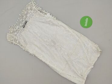 Biała koronkowa bluzka damska bez rękawów - Fason: prosta, lekko wydłużona, z wykończeniem na dole z tej samej koronki - Dekolt: okrągły - Rękawki: krótkie, ażurowe w formie falbanek/cap sleeves -...Stan: