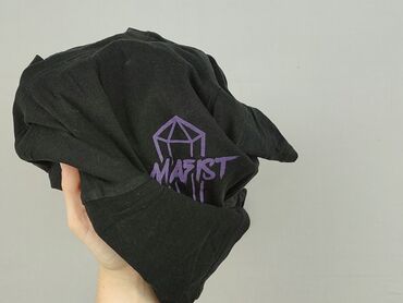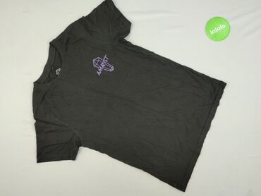 Czarna koszulka z krótkim rękawem, ozdobiona fioletowym nadrukiem z napisem "AMAFIST" i geometrycznym kształtem. Koszulka ma okrągły dekolt i jest wykonana z miękkiego materiału, co zapewnia komfort noszenia. Idealna do codziennych stylizacji.