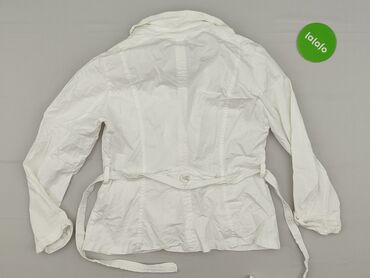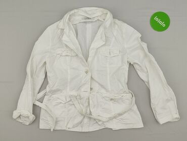 Biały damski żakiet Denni, rozmiar 44. - Klasyczny kołnierz z klapami - Zapinanie na 4 perłowe guziki z przodu - Długie rękawy z możliwością podwinięcia mankietów - Taliowany krój z modelującymi p...