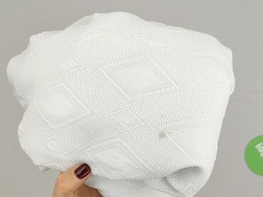 Biała ażurowa bluzka damska - Krój: luźny, z krótkim rękawem typu cap - Dekolt: głęboki w kształcie litery V (z przodu i z tyłu) - Tkanina: 100% poliester – lekko elastyczna, z dekoracyjnym, geome...