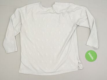 Bluzka damska z długim rękawem - Kolor: biały - Dekolt: okrągły, wykończony srebrną plecioną lamówką - Nadruk: przetarcia/srebrne aplikacje z przodu - Rękaw: długi (około 3/4 – lekko krótszy) - Kr...