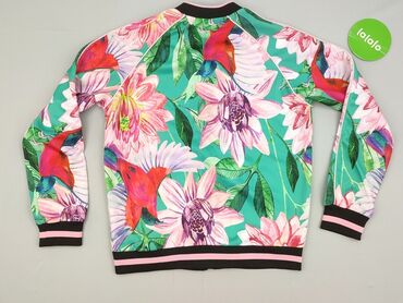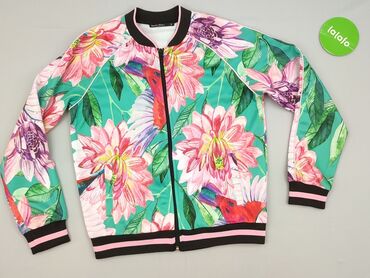 Kurtka bomberka HOUSE collection – rozmiar L - Wzór: tropikalny, czarne tło z zielonymi liśćmi i żółto‑kremowymi kwiatami - Zapięcie: suwak na całej długości - Kieszenie: dwie boczne zapinane na z...