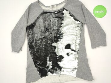 Szara bluzka/długi top z połyskującymi wstawkami z cekinów. - Kolor: jasny szary melanż - Krój: luźny, z obniżoną linią ramion - Rękawy: 3/4 - Dekolt: okrągły - Ozdoby: duże panele z białych/srebr...