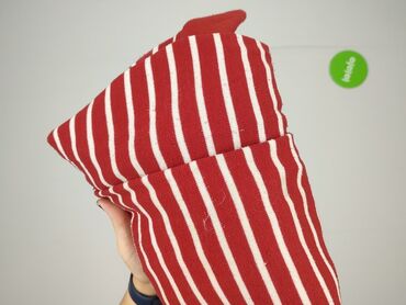 - Wzór: poziome paski w odcieniach czerwieni i ecru; kontrastowa, gładka dolna wstawka i mankiety z delikatną lamówką