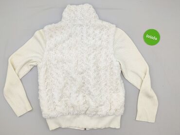 Na suwakBiała damska bluza/sweter z zamkiem, łącząca dwa rodzaje materiału: