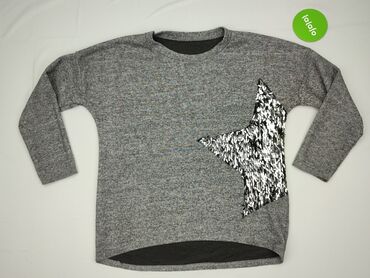 Długi rękawSzara damska bluza/sweterek z długim rękawem. Miękka dzianina o drobnym melanżu, okrągły dekolt. Z przodu i z tyłu dekoracyjna wstawka w kształcie gwiazdy z dwukolorowych cekinów, które pięknie się mienią. Krój lekko przedłużany z tyłu (asymetryczny dół). Materiał elastyczny i wygodny, idealny na co dzień. Kolor: szary melanż z czarno‑srebrnymi cekinami. Przeznaczenie: dla kobiet.