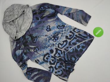 Bluza damska z kapturem, granatowa w drobny panterkowy wzór. - Fason: wkładana przez głowę, luźniejszy krój - Zamek: krótki suwak 1/3 długości z ozdobnym uchwytem - Kaptur: miękko podszyty, obszer...Stan: