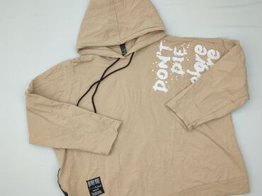 Bluza z kapturem – beżowa, welurowa - Miękki, przyjemny w dotyku welur w kolorze beżowym - Luźny krój z długim rękawem - Kaptur ze sznurkiem w metalowych przelotkach - Ozdobne marszczenia z czarne...