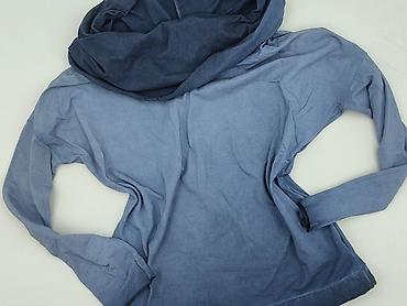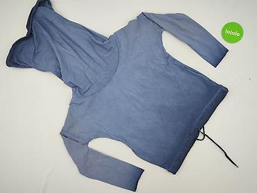 Damska bluza z kapturem, długi rękaw, odcień niebieskiego (ombre/gradient od jaśniejszego do ciemniejszego). Miękka, cienka dzianina bawełniana z domieszką elastanu (wyczuwalna rozciągliwość). Duży, obszerny kaptur typu komin. Prosty krój z lekkim oversize’em, dół regulowany sznurkiem.